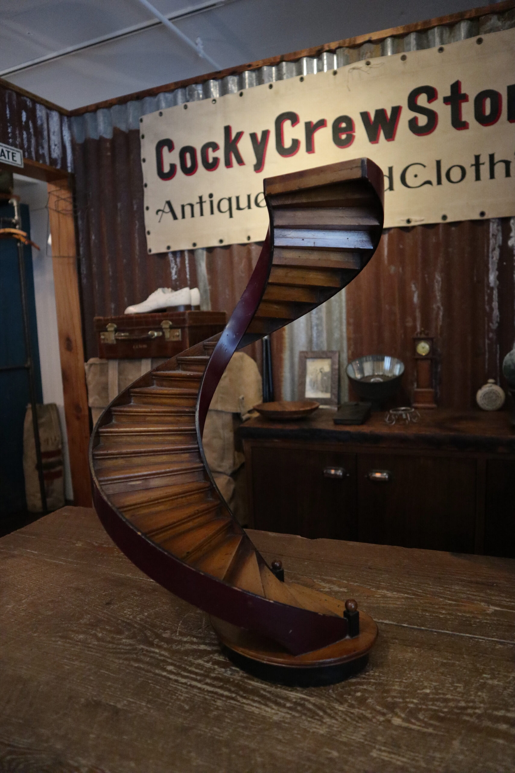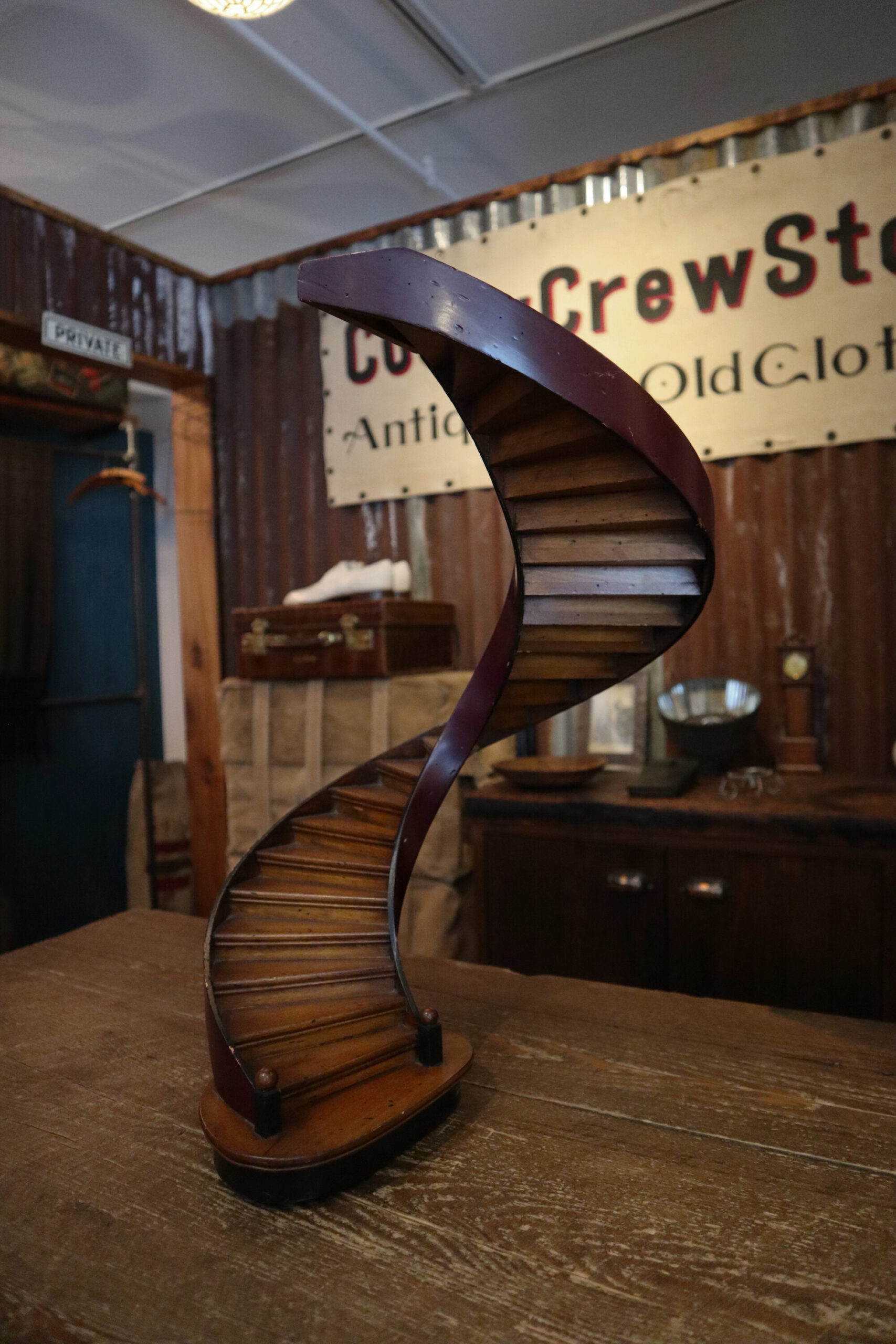 この模型は、アメリカのニューメキシコ州サンタフェにあるロレット・チャペル(1878年完成)という教会に存在する「奇跡の螺旋階段」を模したものと思われる。