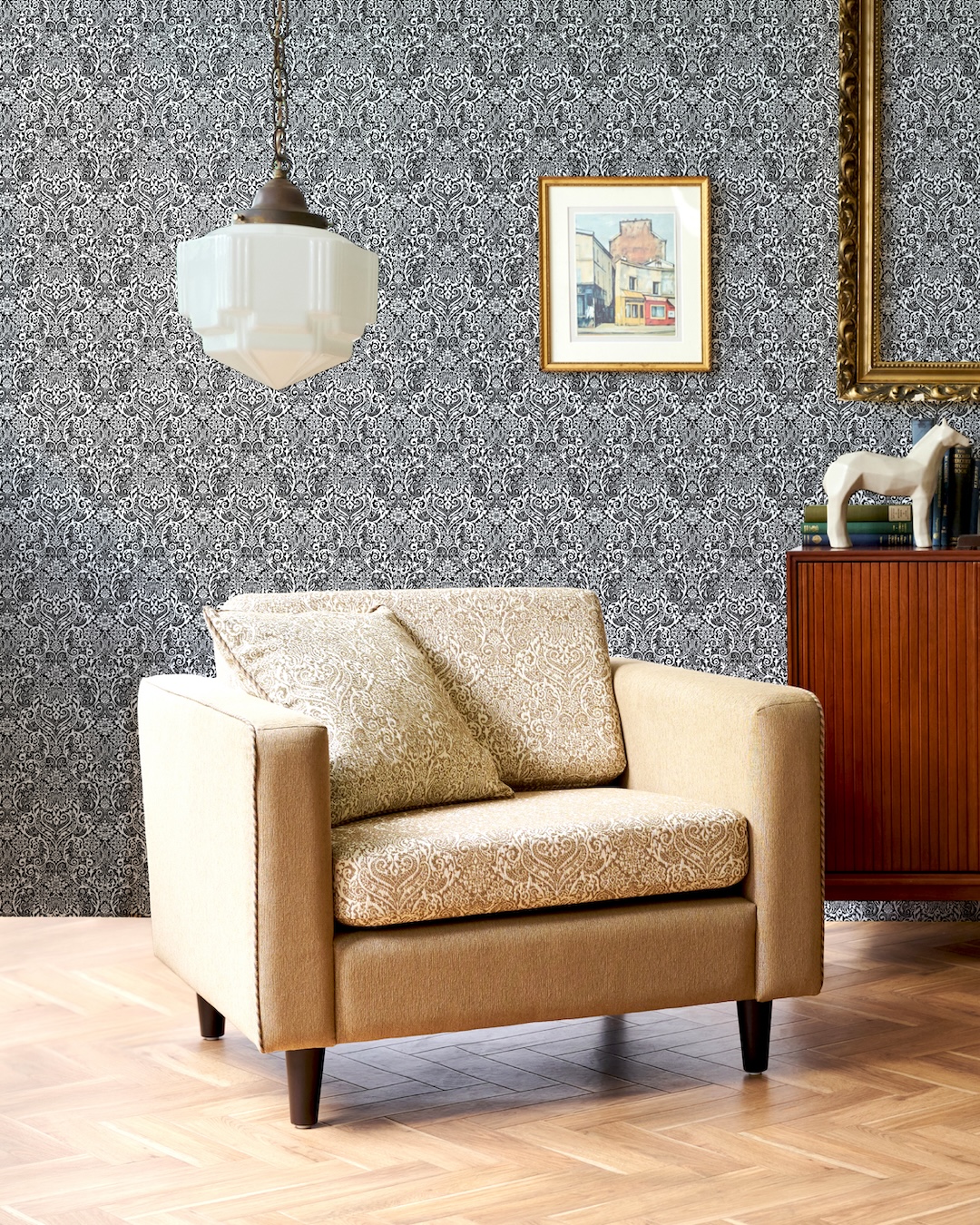 UNITED WALLPAPERの膨大なアーカイブから厳選した、トラディショナルなダマスク柄。