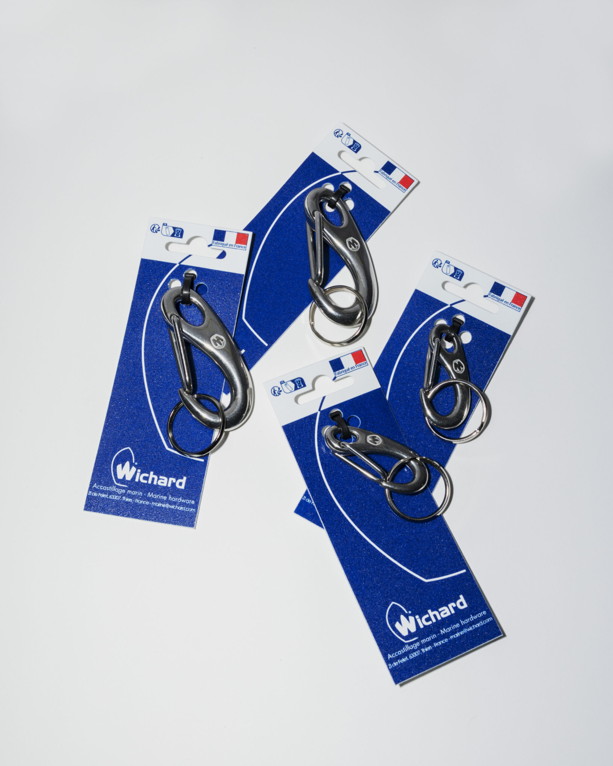 1919年フランス・ティエールで創業したWichardは、ヨット業界をはじめスカイダイビングやレスキュー、宇宙分野でも使用される高品質パーツを製造。マリンツールで培った信頼性を活かしたキーリングは、100年以上の歴史が誇る本物の存在感を放つ逸品。