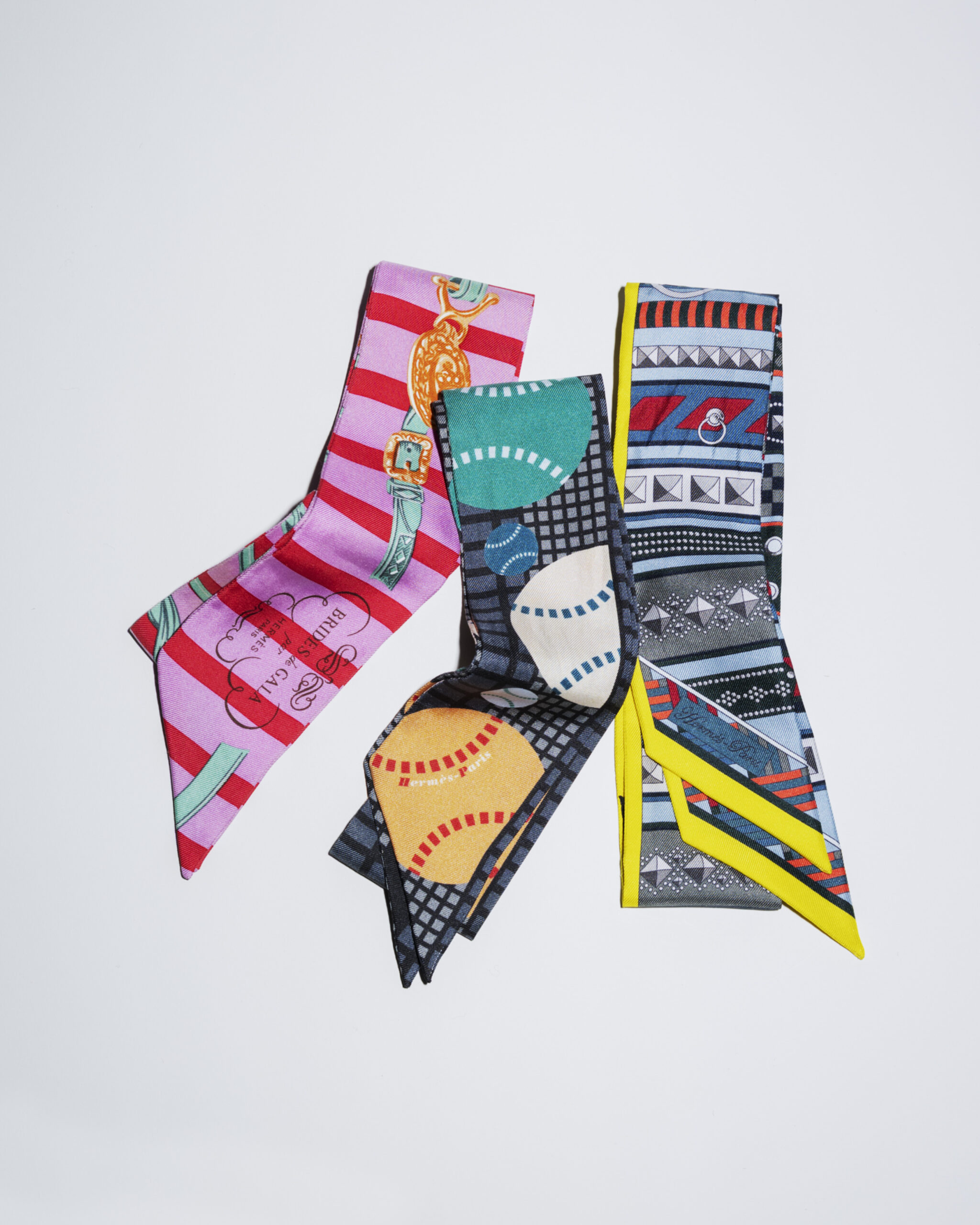 HERMÈSを代表する“ツイリー”をヴィンテージでセレクト。バンダナやネクタイ感覚で首元に取り入れられる細長いスカーフは、上質なシルクの艶と彩りで大人のスタイルに洒落感を添える。