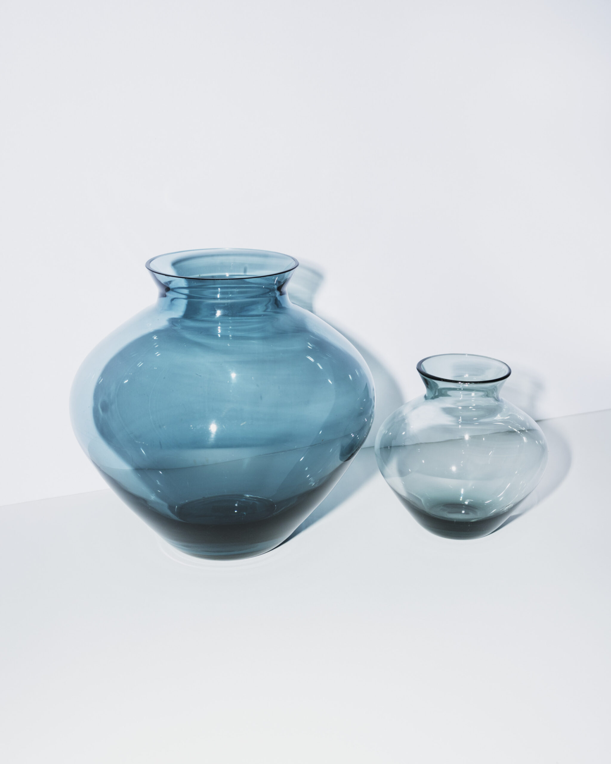 バウハウスの巨匠ヴィルヘルム・ヴァーゲンフェルトが手掛けたガラスベース。端正な造形と淡いトルマリンカラーが美しく、花器としてもオブジェとしても活躍する実用性と芸術性を兼ね備えた名作。