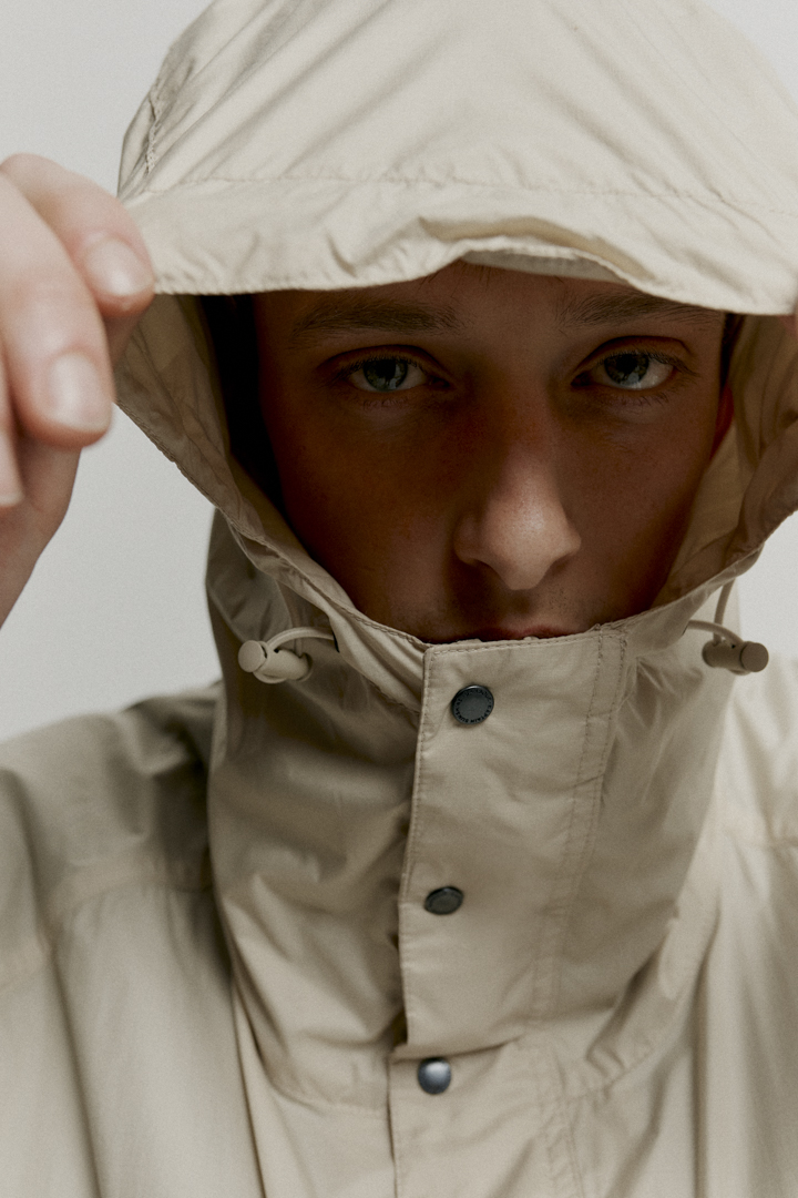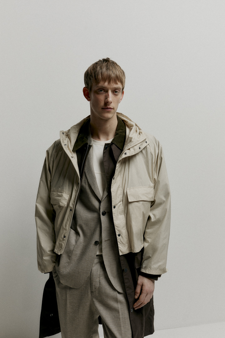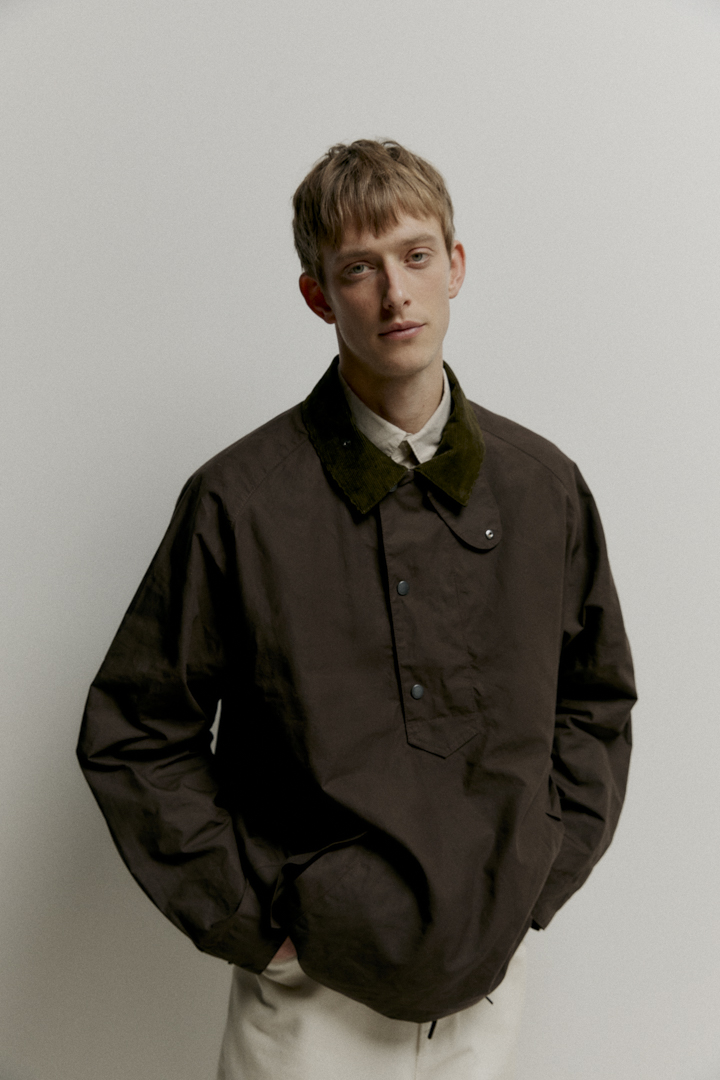 また、オーバーサイズのシルエット、ドローコード、サイドジップなど、船乗りのユニフォームに由来するディテールを随所に取り入れ、北海に面した港町・サウスシールズにルーツをもつバブアーの伝統を表現している。